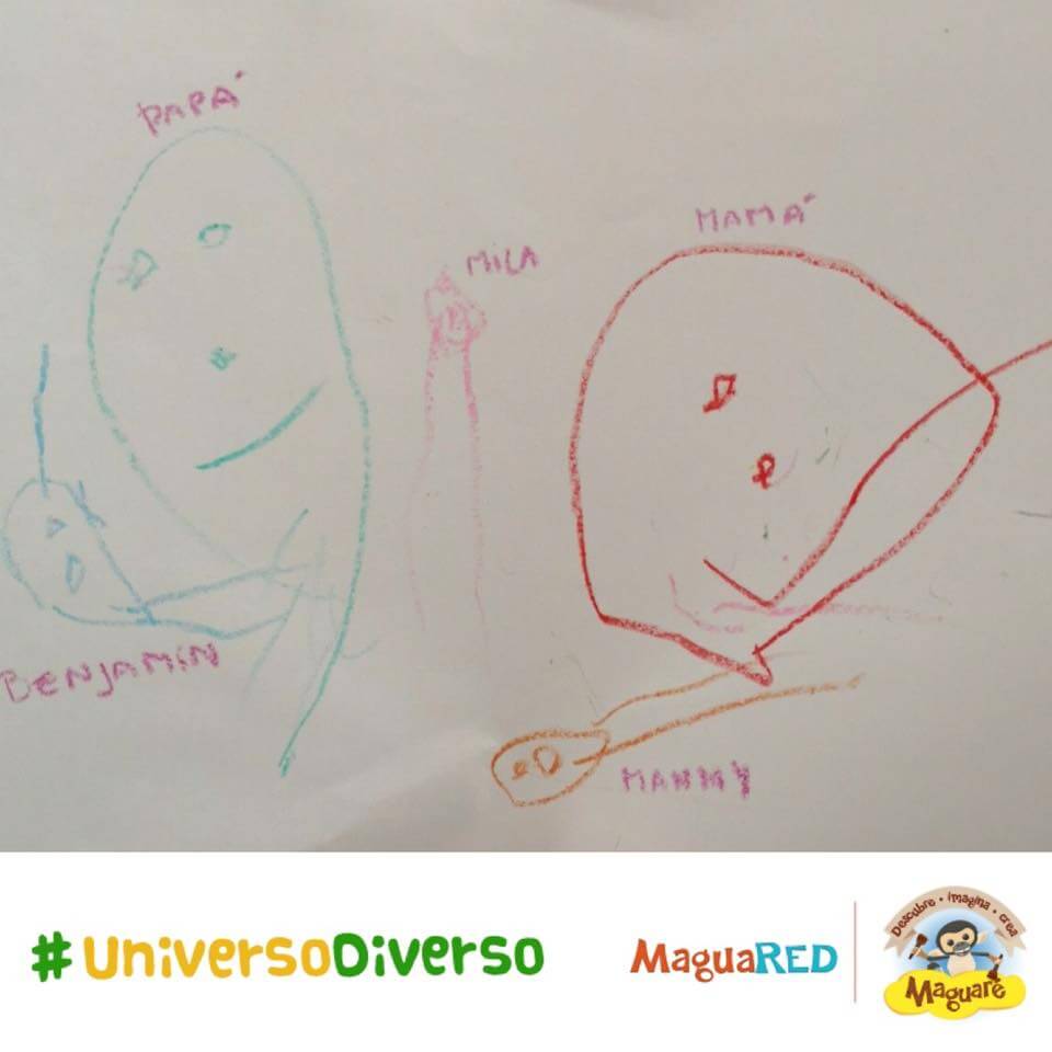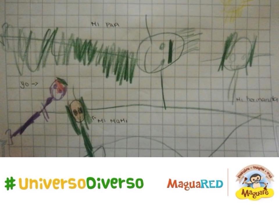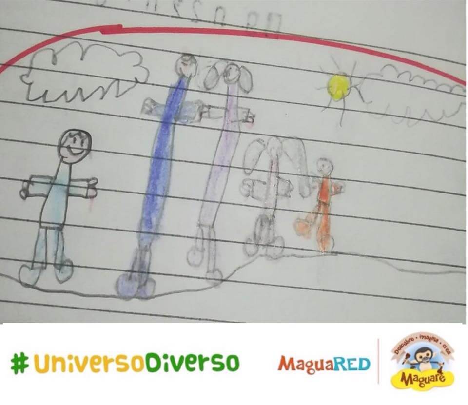 Cada región, cada familia, cada comunidad y cada niño es un #UniversoDiverso. Por eso convocamos, durante todo el mes de mayo, a todos los padres, maestros, cuidadores y amigos de la primera infancia, a participar de nuestra actividad del mes: ¡los niños dibujaron su #UniversoDiverso! Con trazos y colores los más pequeños nos mostraron sus entornos, sus padres, sus mascotas, sus colegios… Recibimos más de quince dibujos de ciudades como Bogotá, Bucaramanga y Oiba, en Santander.