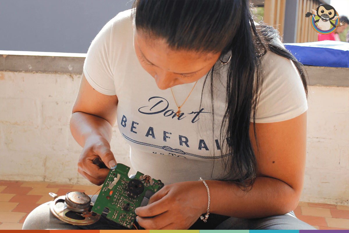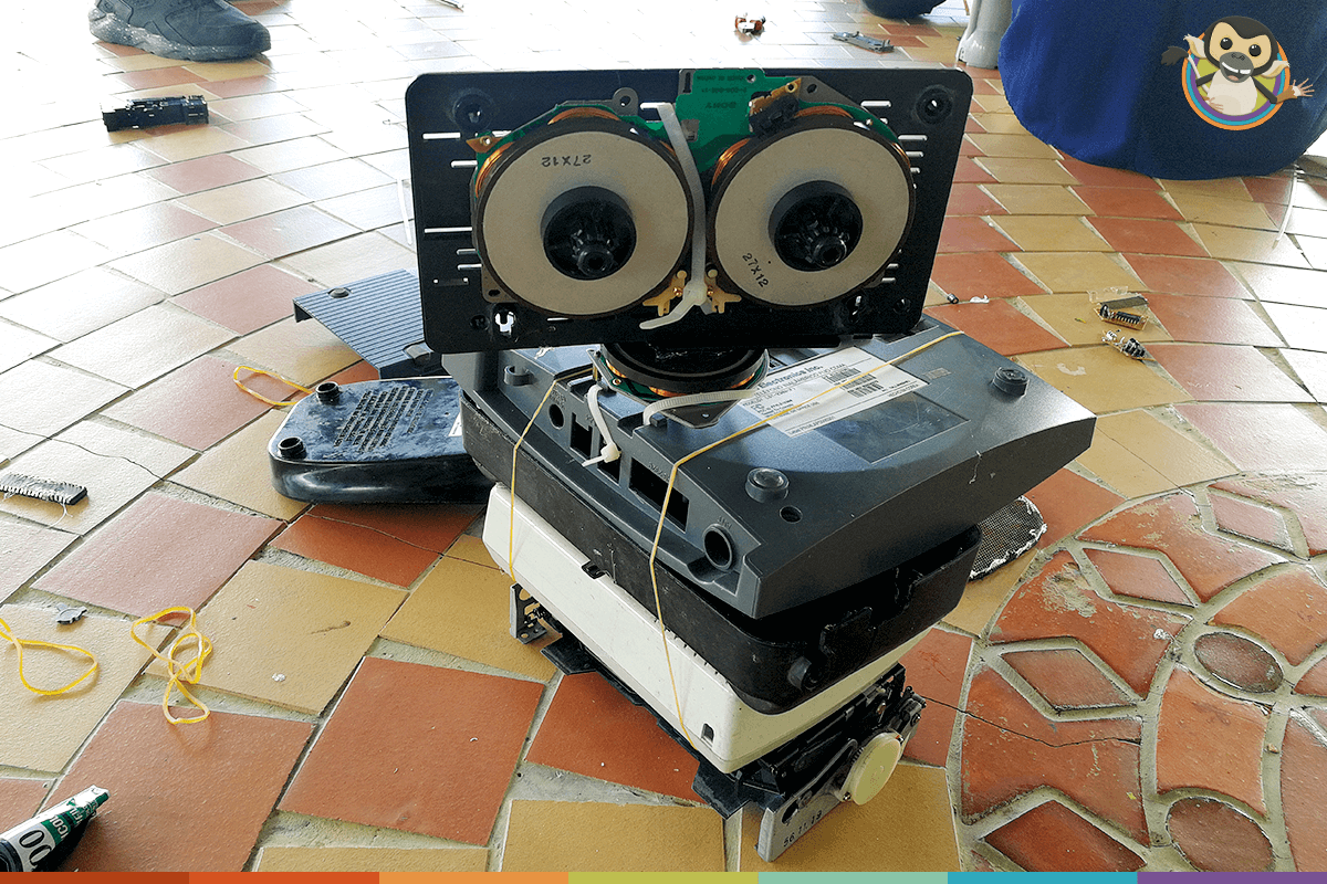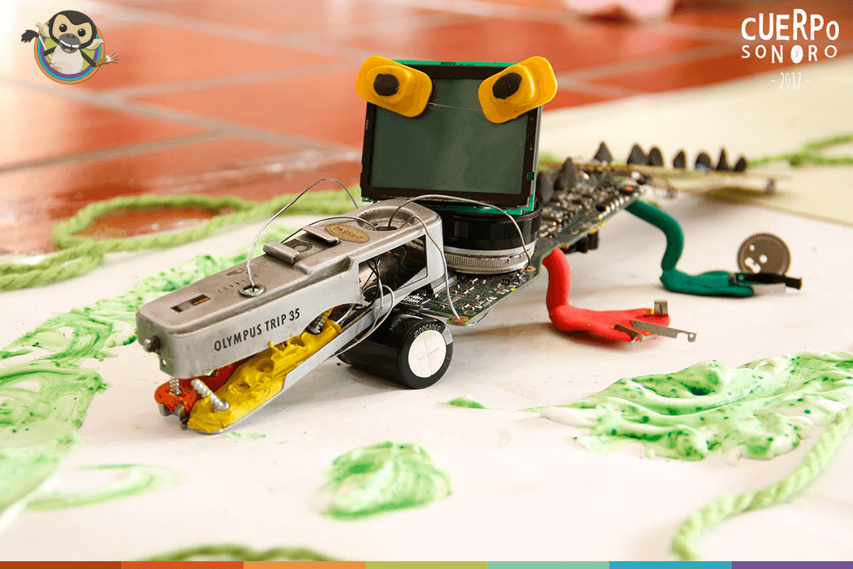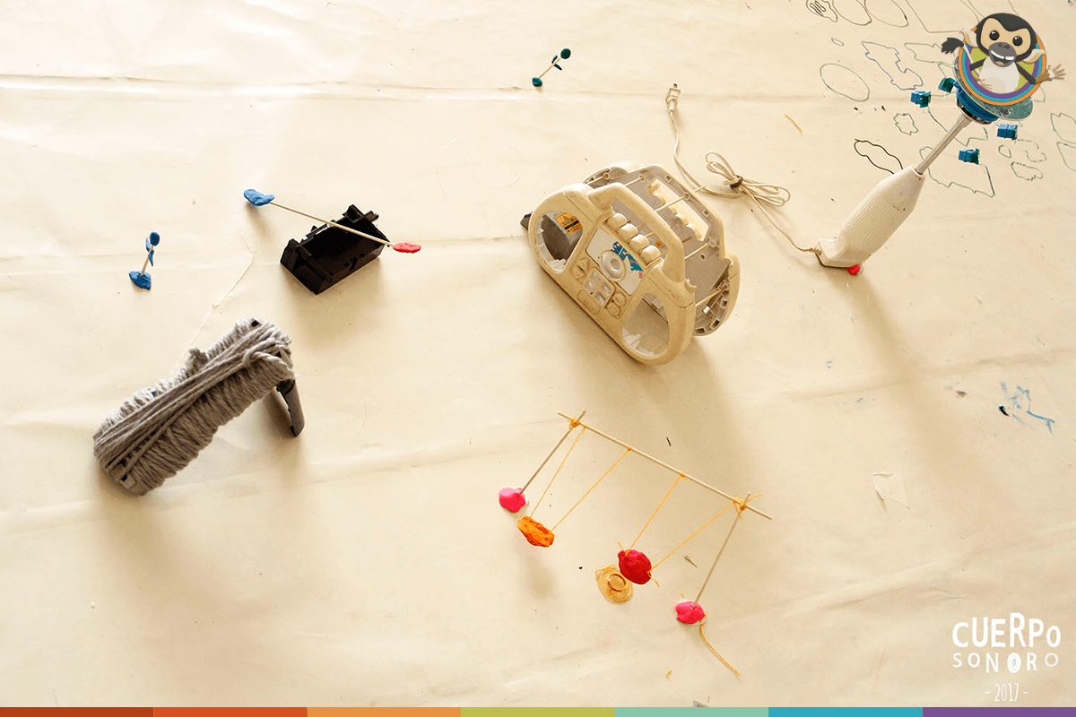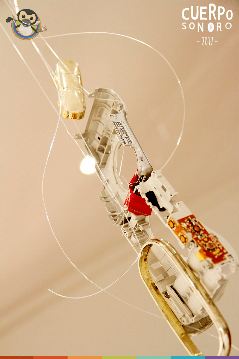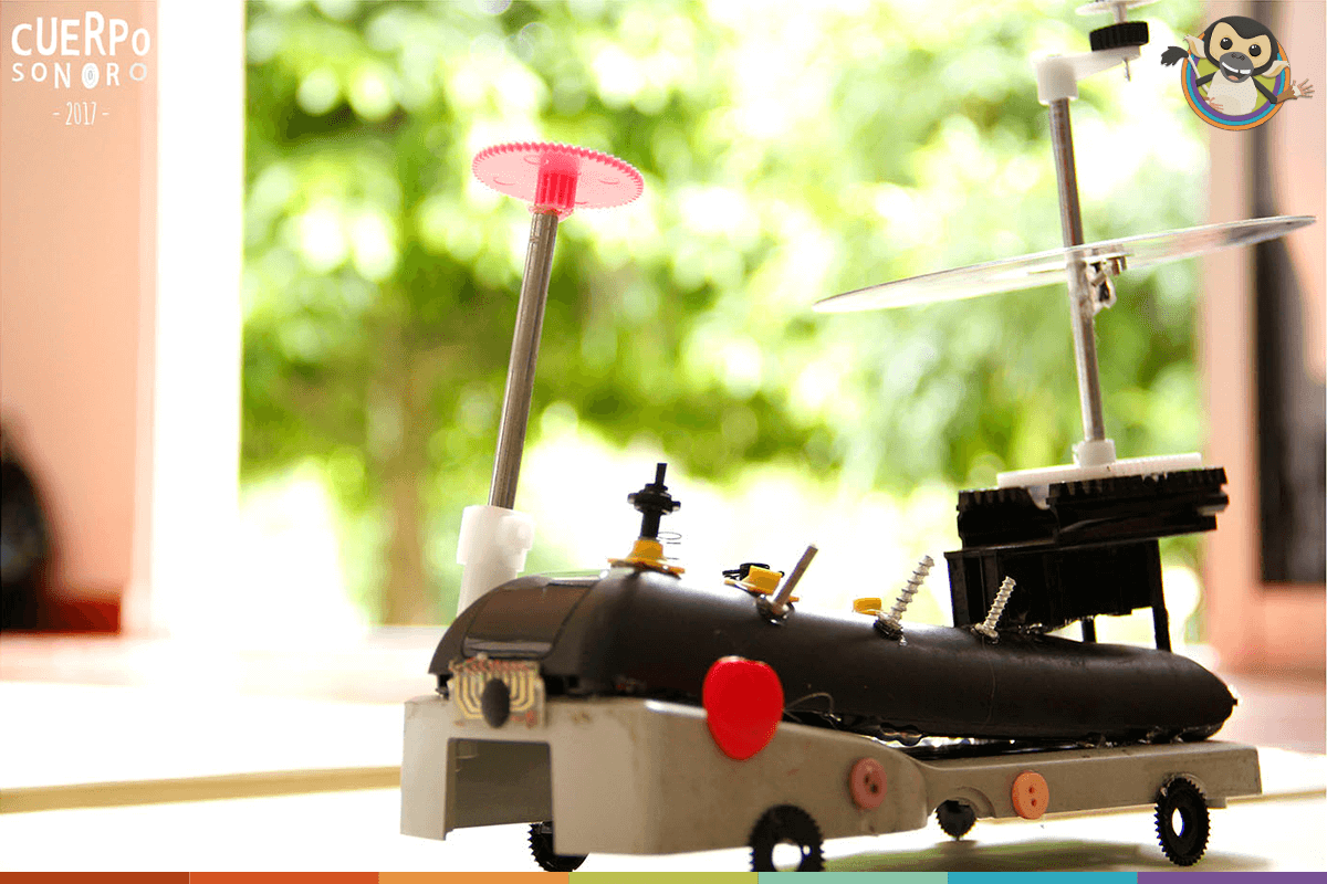 “Es natural que aparezcan robots, formas figurativas, personas, extremidades. En el diplomado se han hecho objetos sonoros sin ningún conocimiento de escultura, modelado o electrónica. Es un “cacharreo” intuitivo y, adicionalmente, con los objetos sonoros está la escucha, el descubrimiento de sonidos pequeños insertados en los objetos para vivir una experiencia sonora ”