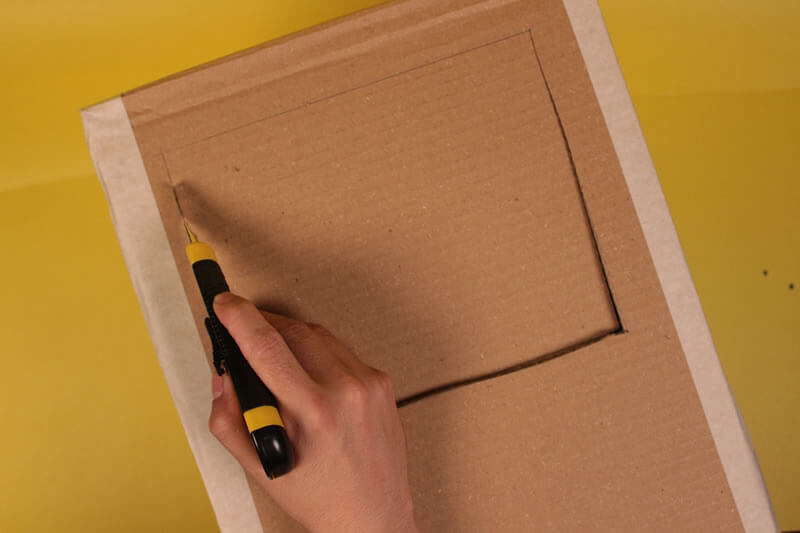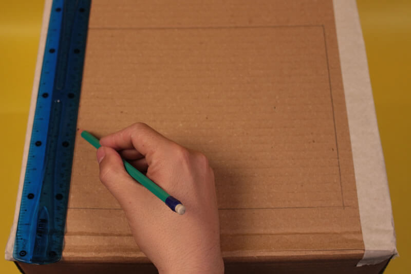 - Tener en cuenta los tamaños de los rectángulos y la ubicación en los que se deben dibujar y recortar. El más pequeño es para el escenario y debe estar justificado hacia el extremo de arriba, y el más grande, en el respaldo, debe estar justificado hacia el extremo de abajo para que puedan ingresar los personajes.