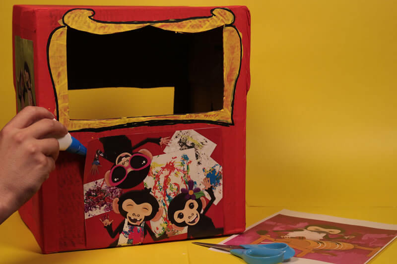 Es importante que el adulto sea quien lidere la elaboración del teatrino porque algunos pasos implican la manipulación de elementos que pueden ser ingeridos por los niños como el pegante o las pinturas; también hay que manipular objetos cortopunzantes como el cortador.