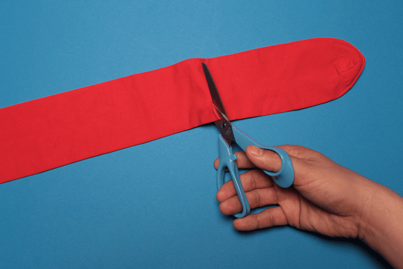 Busquen una media que ojalá no tenga par (siempre hay una que se pierde entre nuestros cajones o que se la traga la lavadora…). En esta ocasión usaremos una media roja para hacer la cara de Maya la guacamaya, pero si eligieron otro personaje pueden utilizar una media de otro color.