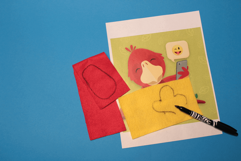 - Para el proceso de dibujo de la cara del personaje pueden imprimir a blanco y negro o color la imagen y ayudarse calcándolo con papel mantequilla sobre el papel, el fieltro o el material que hayan seleccionado. Recuerden que no es importante que quede exacto, sino que el proceso sea divertido.