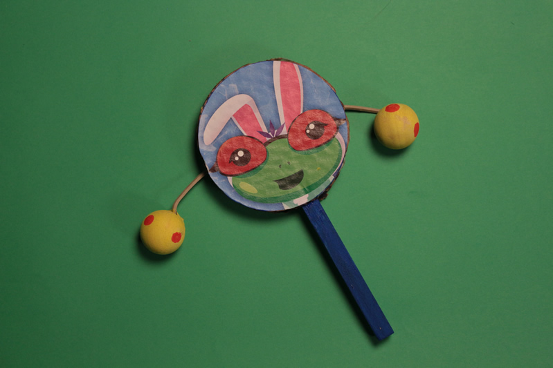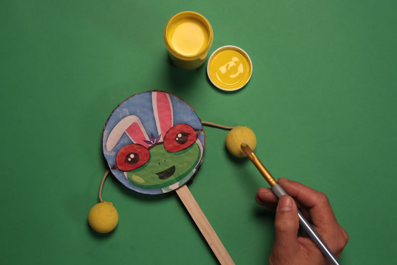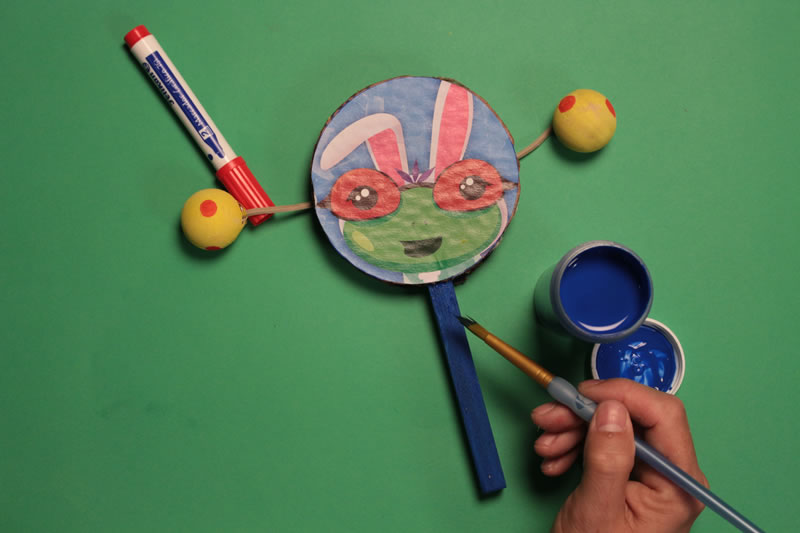 12. Pinten las bolitas de madera y el palito del tamborín con sus colores preferidos.