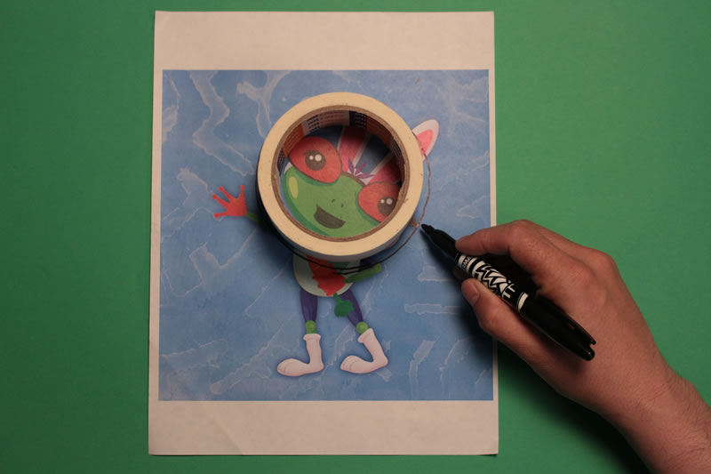 10. Busquen la ilustración de su personaje preferido e impriman dos copias. Dibujen un círculo sobre la cara de cada imagen y recorten.