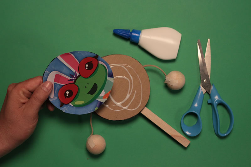 11. Peguen la cara del personaje en los dos lados del tamborín.