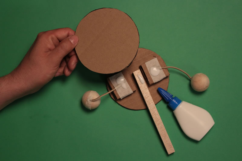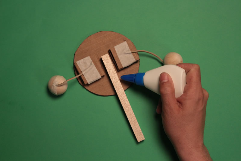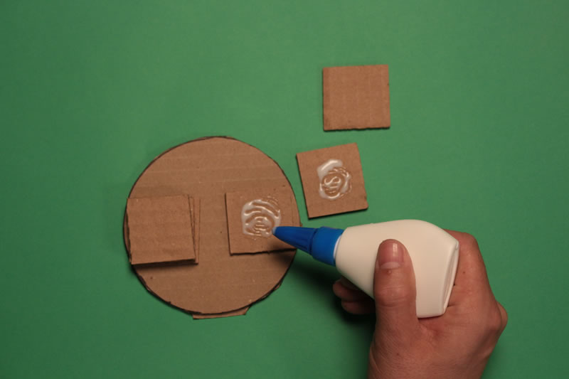 9. Ubiquen y peguen el segundo círculo de cartón encima de las filas de cuadrados y del palo.